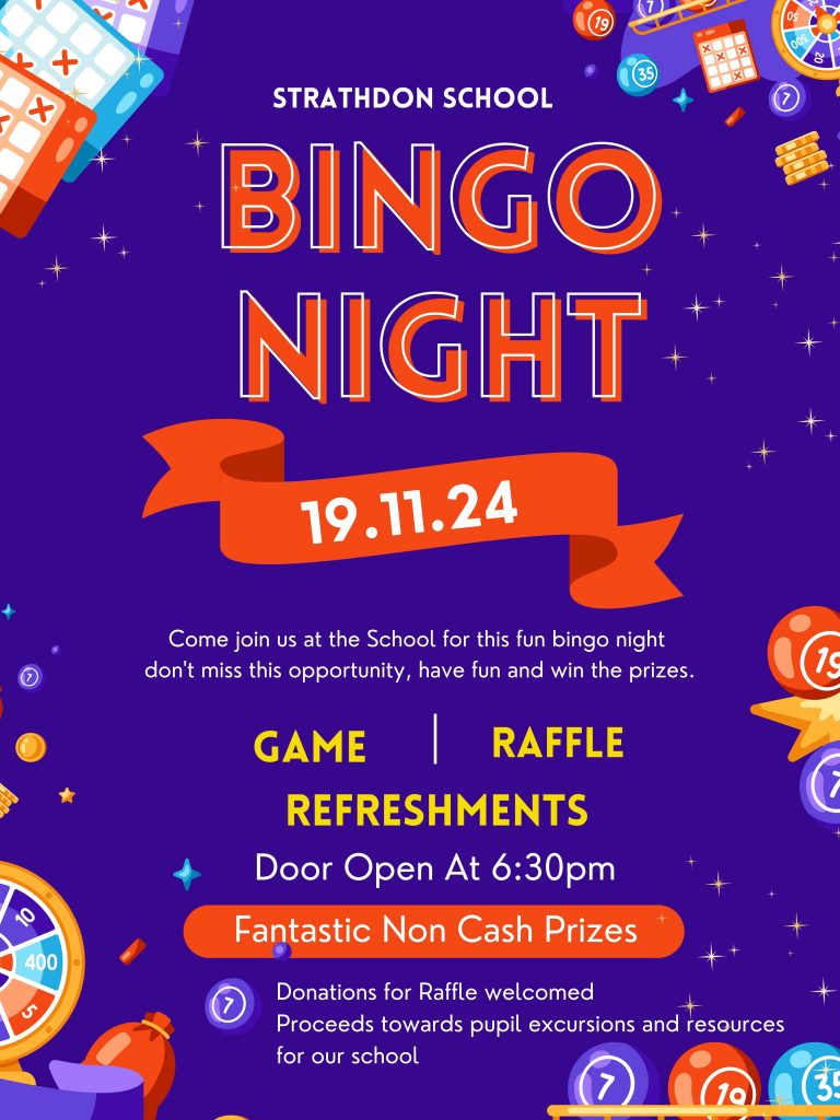 Strathdon School and Parent Forum will be hosting a Bingo Night on Tuesday 26th March 2024.