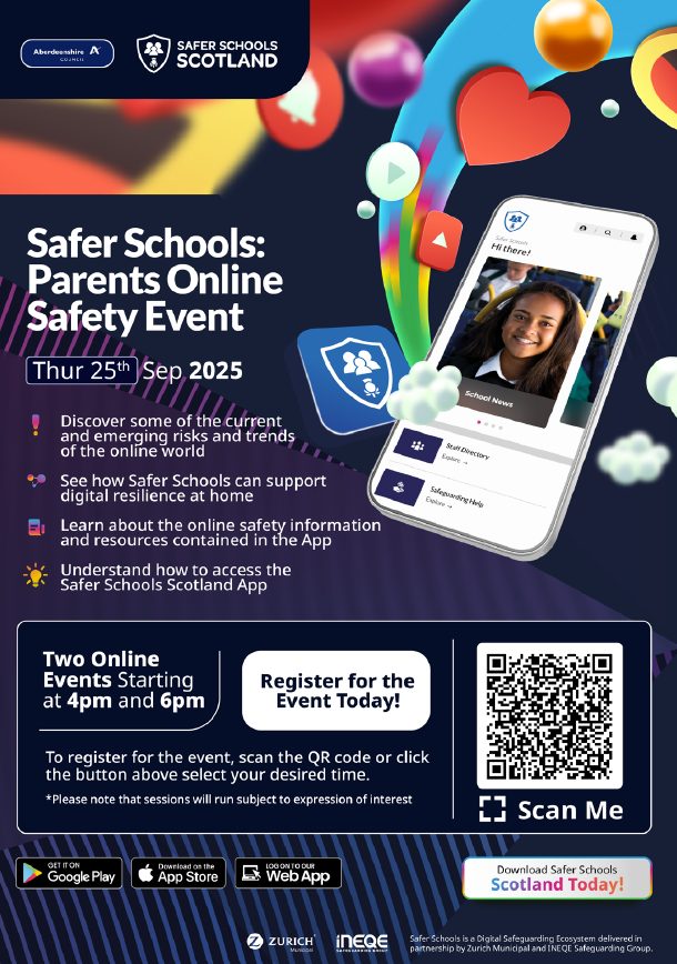 If you have any other issue with parentportal.scot over summer, please refer to Aberdeenshire’s web page (Parentsportal – Aberdeenshire Council https://www.aberdeenshire.gov.uk/schools/school-info/parents-portal/ ) or use the ‘Chat/Virtual Assistant’ or ‘Need help?’ options at the bottom right hand corner of the parentsportal.scot login page. As most school offices are closed for the complete holiday period, any messages left with the school may not be responded to.